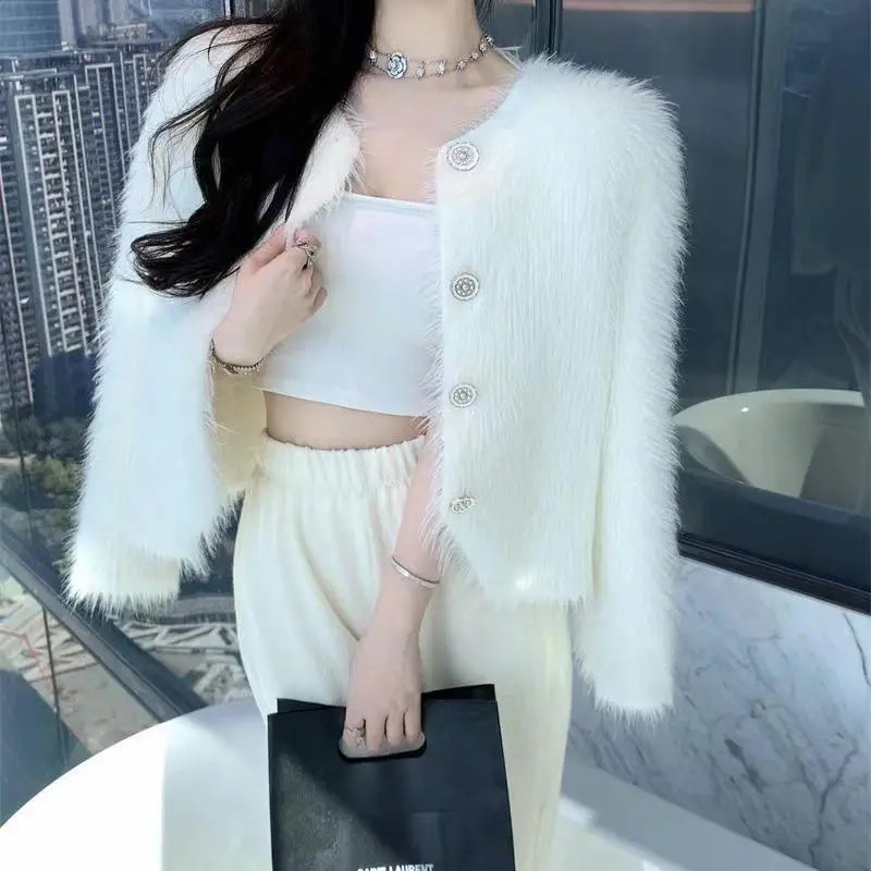 現貨販売 越南風 マイクロファイバー ニットカーディガン レディース ショート丈 ゆったり セーター ジャケット