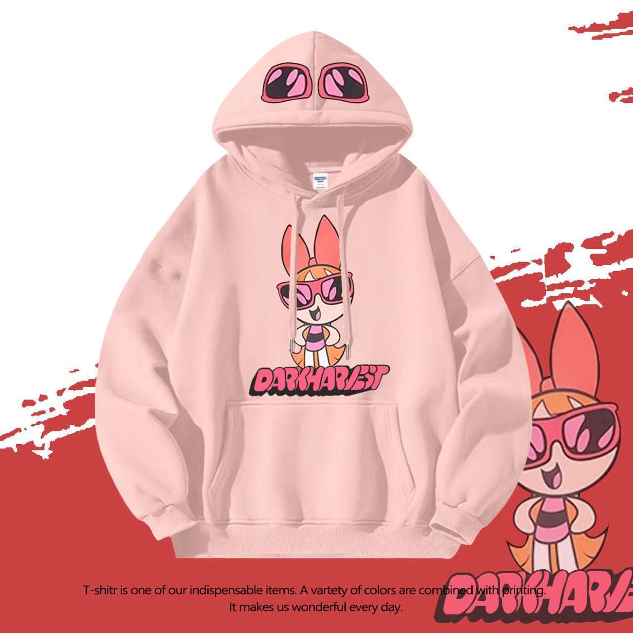 国境を越えた対外貿易台湾秋冬の新型アニメプリントと帽子のセーターの男女のゆるいポケットの上着の卸売り