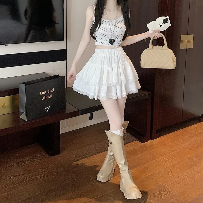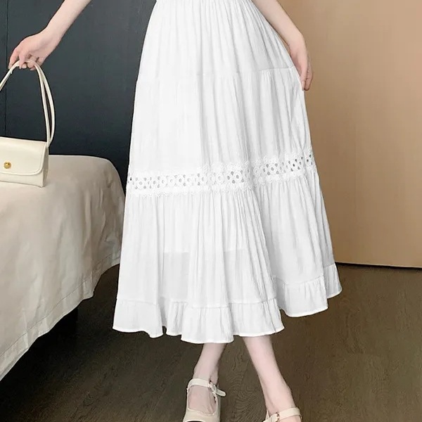 台湾の国境を越えたスポット新しい白いケーキ A ラインスカート女性の夏のハイウエスト怠惰な気質の妖精スカート小柄な人向け