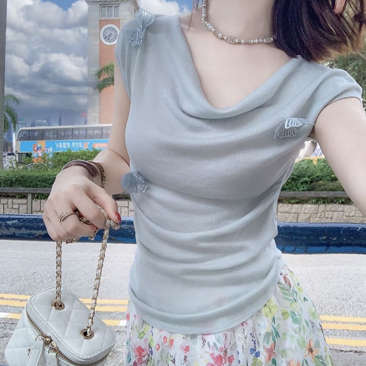 台湾と韓国から輸入した、純粋な欲望の襟と蝶のフライングスリーブのセーター、新しいスタイル、スリムで多用途