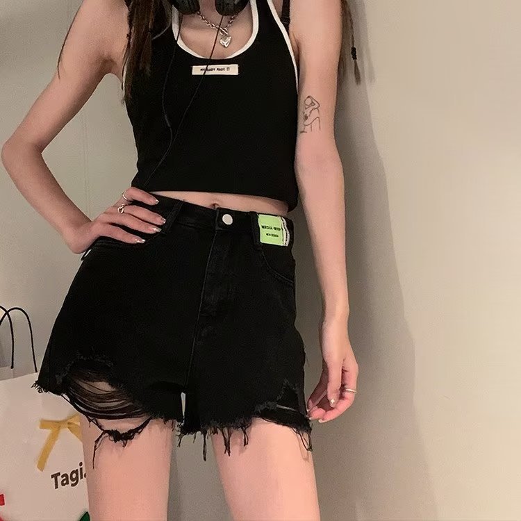 台湾のクロスボーダー在庫ハイウエストデニムショートパンツ女性用夏新作ゆったりワイドレッグ痩身ライトカラーAライン