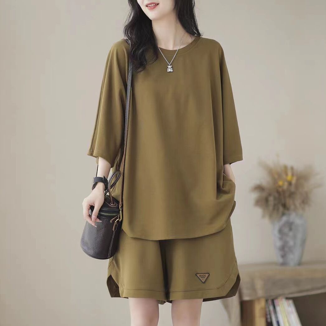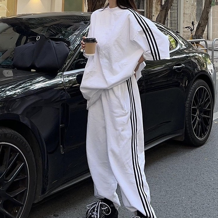 台湾の国境を越えたスポット # 女性の夏の学生向けの塩系香港スタイルのスポーツウェアスーツ、ゆったりとしたファッショナブルな半袖ズボン