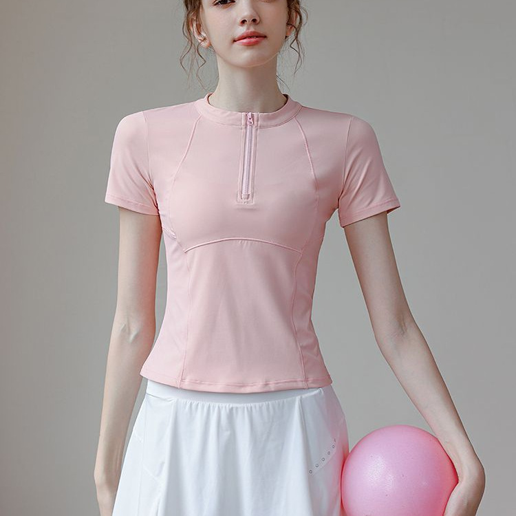 台湾の国境を越えたスポット新作スポーツトップス女性用夏スリムフィット速乾フィットネスハーフジッパー朝ランニング