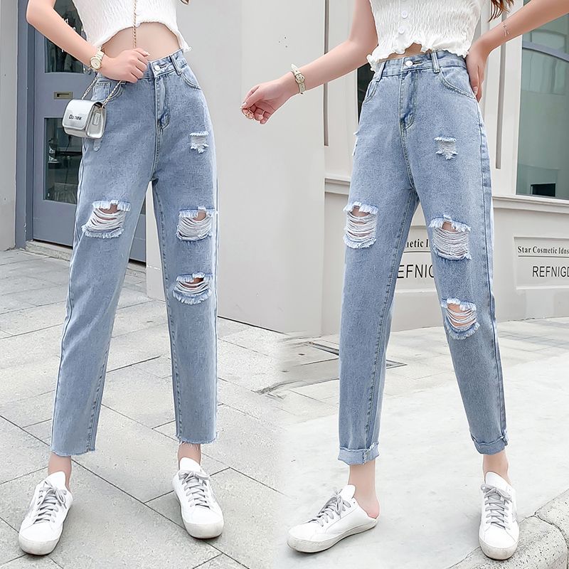 台湾クロスボーダー既製ジーンズレディース春新作原宿スタイルルーズダッドパンツ夏薄いハイウエストリッピングストレート