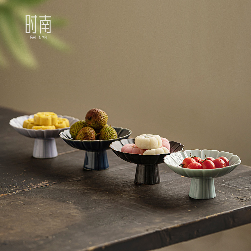 セラミック中国風の背の高いティートレイ、レトロな背の高いスナックトレイ、家庭用の絶妙なフルーツトレイ、ベルガモットトレイ