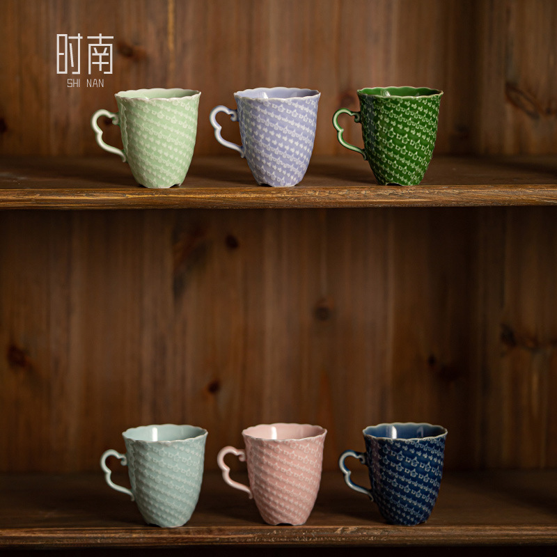 創意的な浮き彫りはハハハハハハハハハ茶杯の女性個人専用陶磁器の帯は高い顔の値の女性の主人の杯を持ちます。