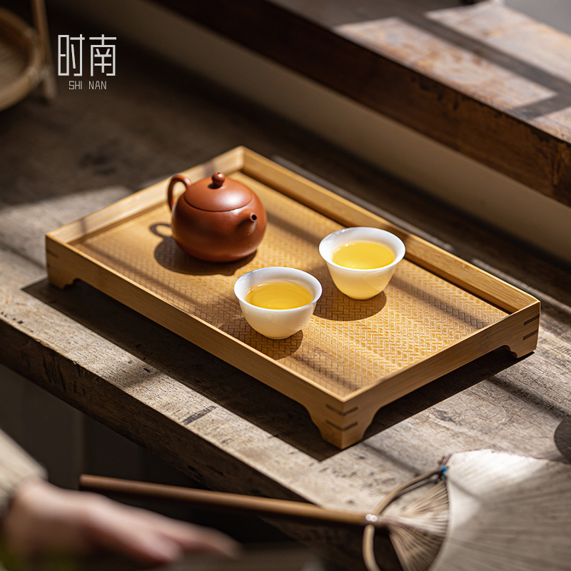 竹製の茶トレーのお茶皿長方形の家庭用小型の乾いた泡台のシンプルなお茶のお茶のカップのお茶の収納皿