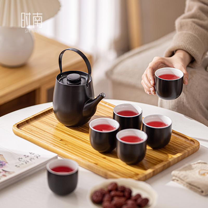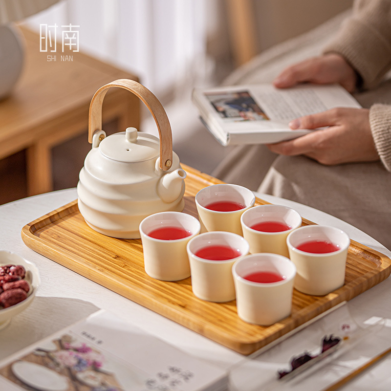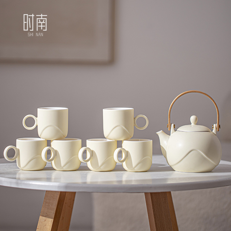 2024年新作提梁壺茶器セット陶磁器家庭用極簡ティーポットクリーム風下昼寝ティーポット