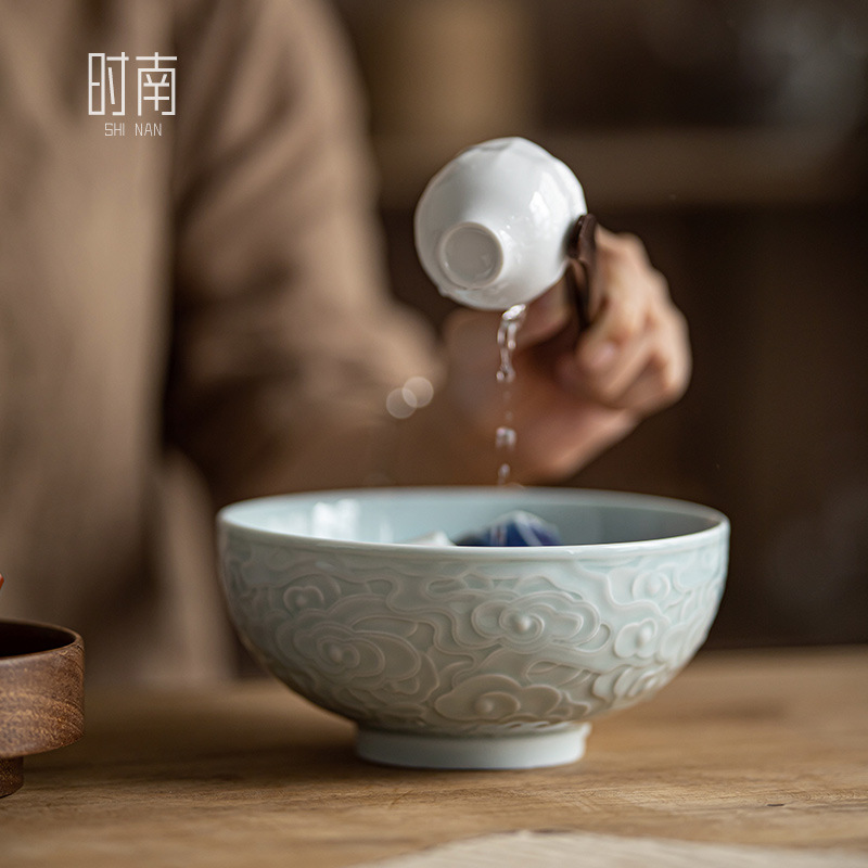 祥雲浮き彫り特大サイズ茶洗筒ハイエンド茶水廃水筒カップ洗浄陶磁器果物皿家庭用中国式麺碗