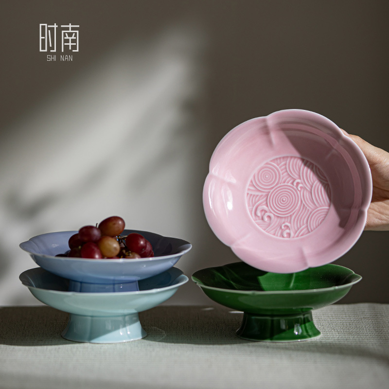 中国式高脚果物皿軽贅沢高級家庭用客間間食乾燥果物皿小精致陶磁茶店茶点皿