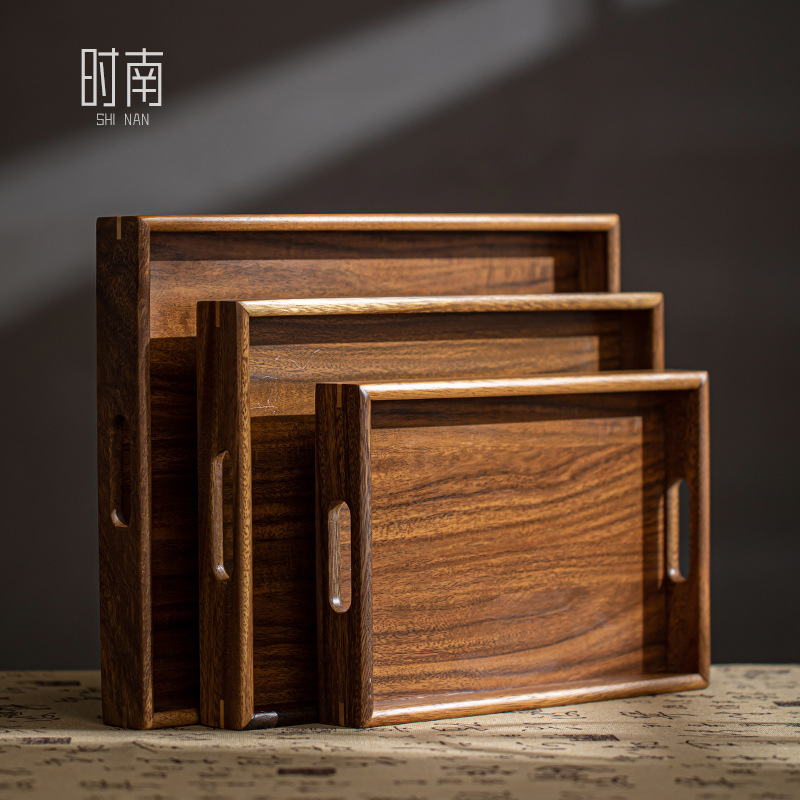 胡桃の長方形のトレーは家庭用に湯飲みを入れます。
