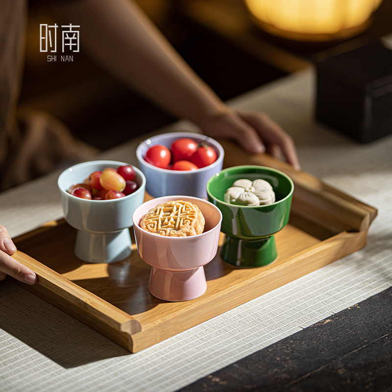 中国式の小さい精巧な高足の果物の皿の客間の家庭用の高級なお茶のいくつかの乾燥している果物の間食は皿のお茶のお菓子の皿を並べます。