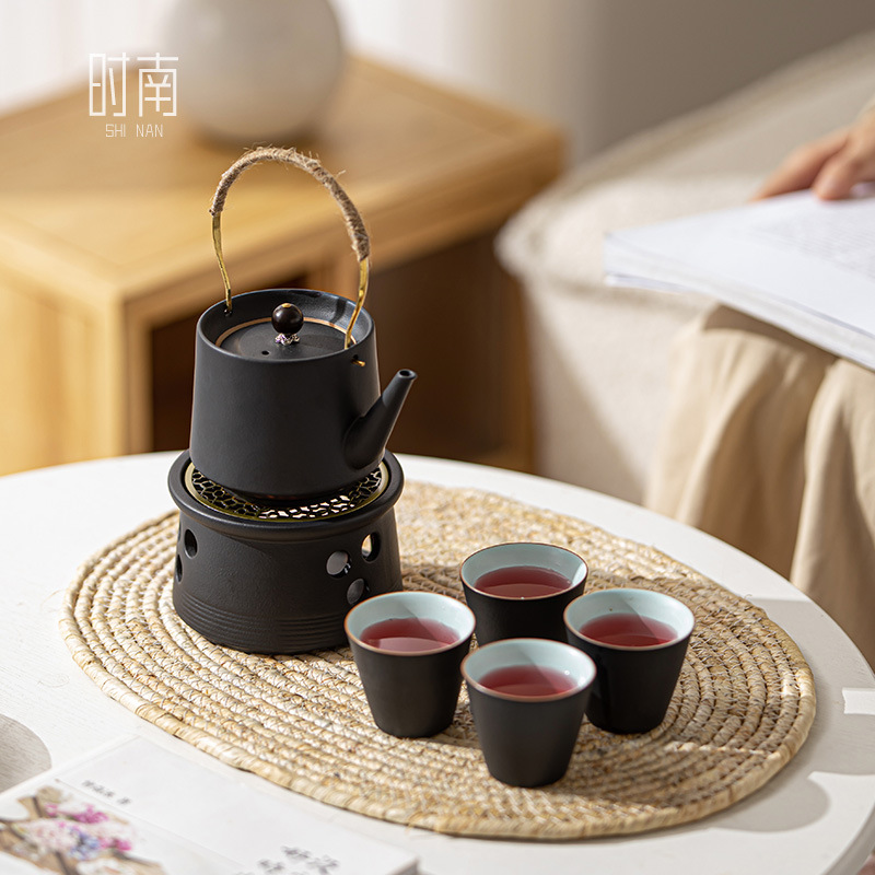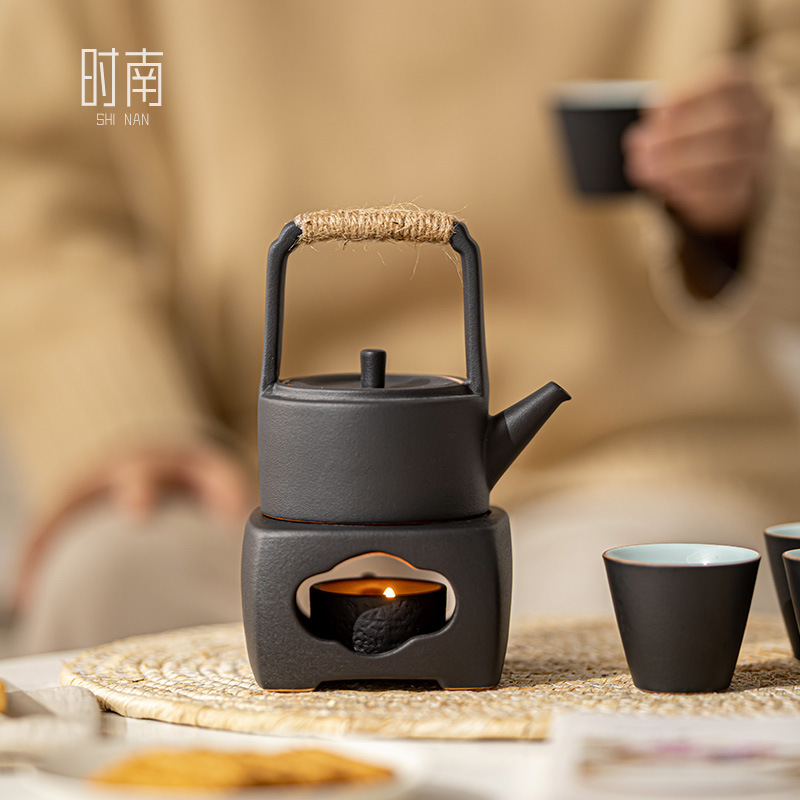 日本式工夫茶器セット家庭用提梁壺一壺二杯暖茶器ろうそく加熱温茶炉ストーブ