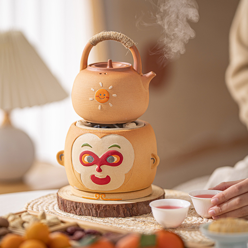 囲炉煮茶缶茶煮茶器焼きミルクティー缶ティーポット家庭用室内陶壺煮ミルクティー電気陶炉セット