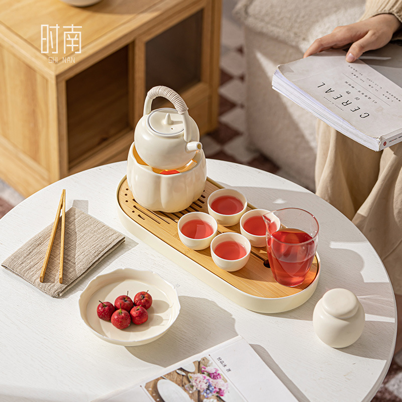 クリームカンフー茶器セット家庭用茶皿1ポット4杯の軽贅沢高級昼寝茶小型温茶炉セット