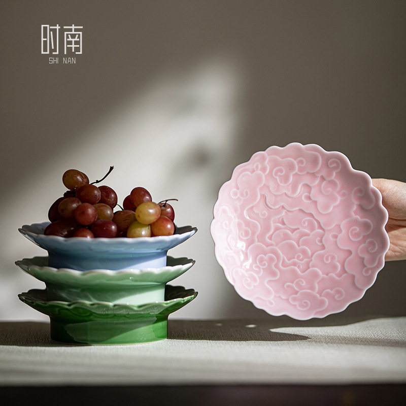 陶磁器の祥雲の高い足の果物の皿の中国式の復古のお茶の皿の家庭の客間の果物の皿の精巧な菓子の皿