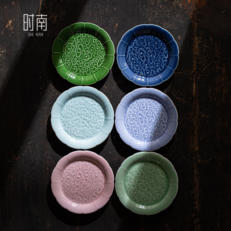 青磁祥雲菓子皿中国式レトロ茶点皿陶磁器家庭用果物皿菓子皿円形ポット承乾泡台