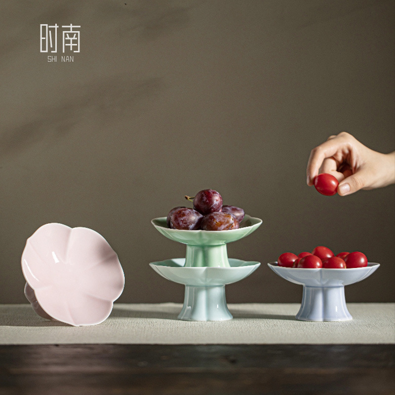 中国式禅意高足皿陶磁器家庭用菓子皿精致レトロ茶点皿茶室乾果軽食菓子皿