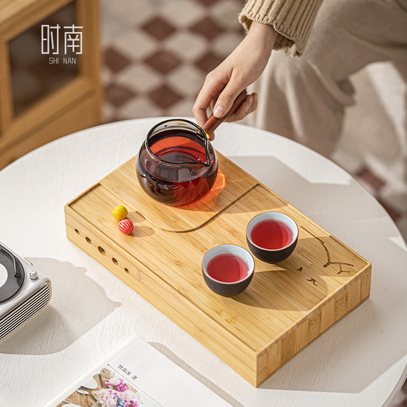 竹制キャンドル温茶炉セット家庭用温茶器加热保温ベース暖茶器茶皿収纳一体