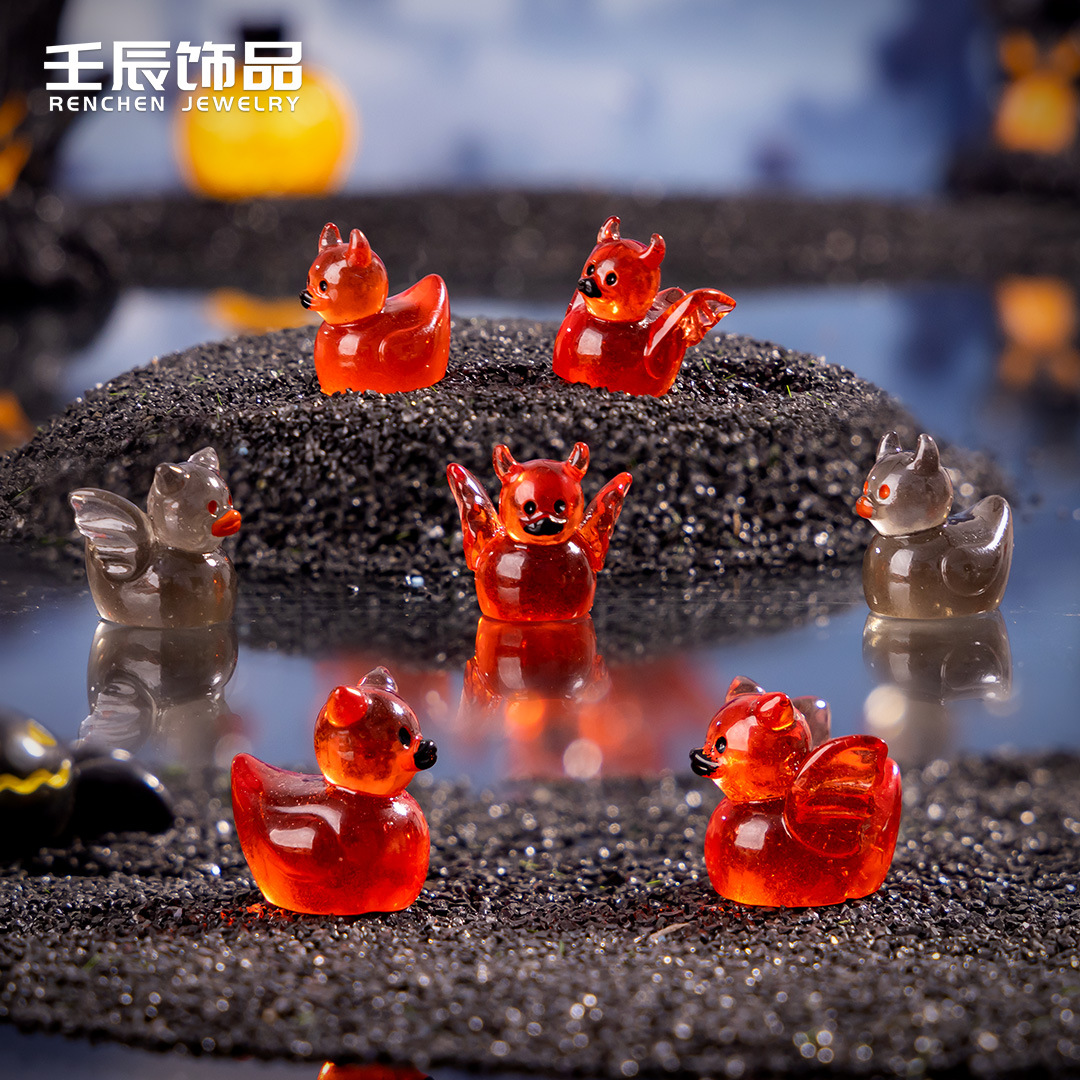 クロスボーダーハロウィンオイルドリップ悪魔サタンアヒルマイクロ風景装飾 diy 樹脂アクセサリーかわいい小さな装飾品