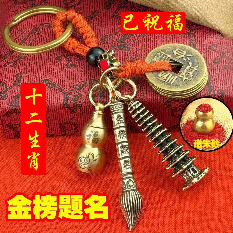 黄銅五帝十二生肖のキーホルダー、ヒョウタンのペンダント、金榜の題名文昌九階の学生プレゼント