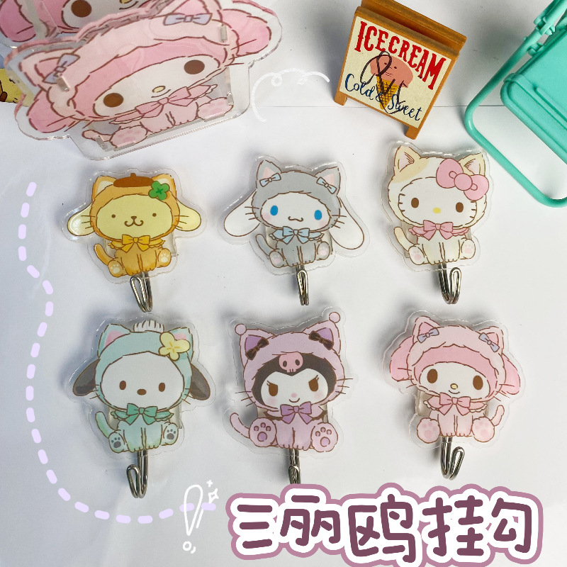 玄関ドア後フックins風サンリオ浴室かわいいアクリル無痕フック穴なし車載壁