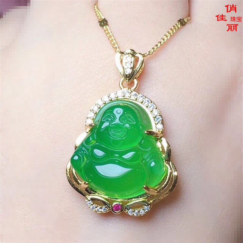 緑の玉の髄は小さい仏陀の瑪瑙の仏陀の玉器の贈り物のアクセサリのメーカーを象眼して氷の種の翡翠を卸売りして代行します。
