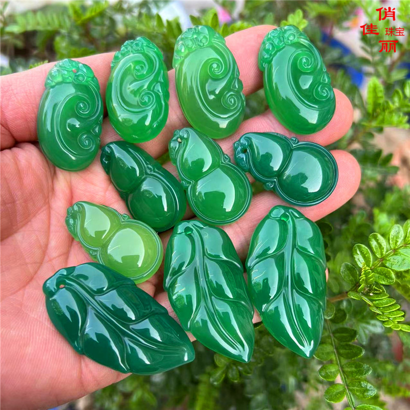 メーカー卸売り緑玉髄瑪瑙如意瓢箪木の葉九尾狐ペンダント玉器玉プレゼント