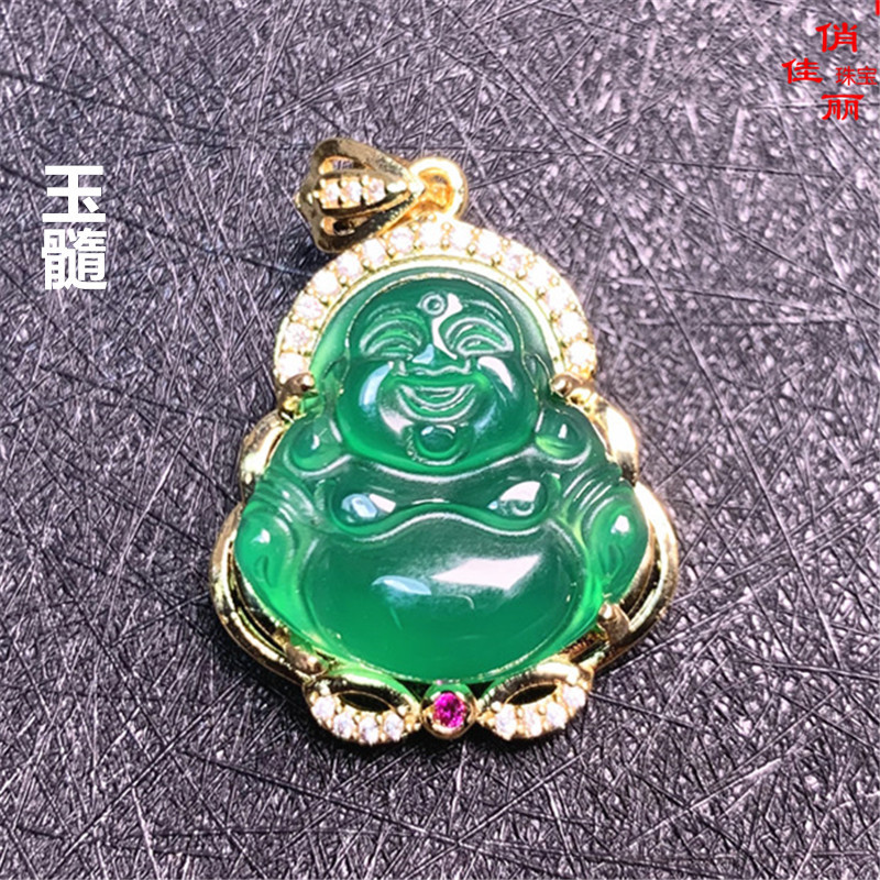 メーカー卸売りグリーン玉髄モザイク小仏ペンダント男女金宝飾玉宝飾品プレゼント