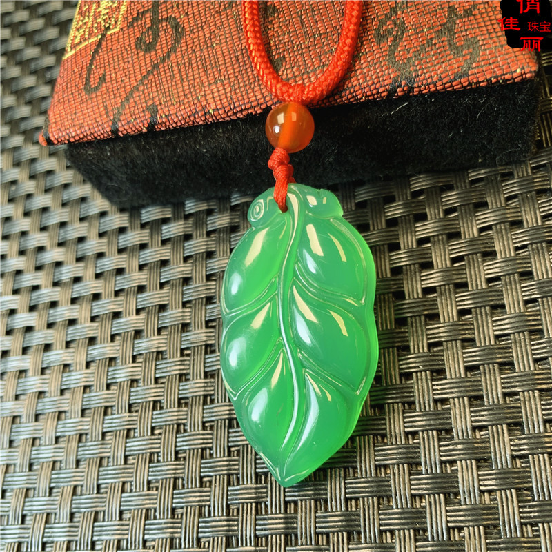 メーカー卸売りの緑玉髄瑪瑙のペンダントの緑の葉は翡翠の玉器の贈り物をまねて代行します。