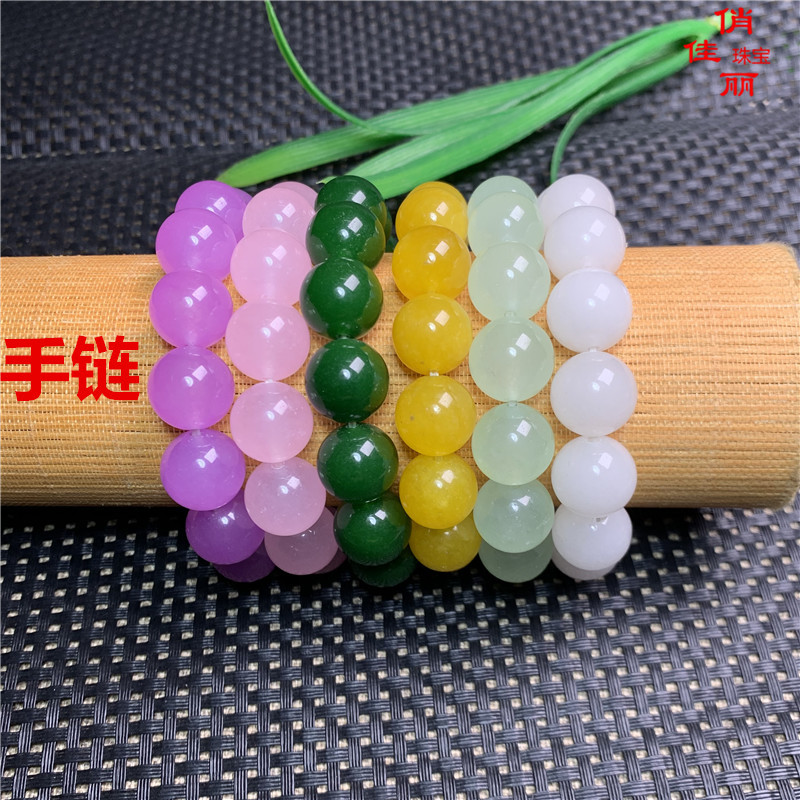 メーカー卸売り玉ブレスレット石英岩玉雑石黄蝋石黄龍玉ゴビ玉手串1.4cm代発
