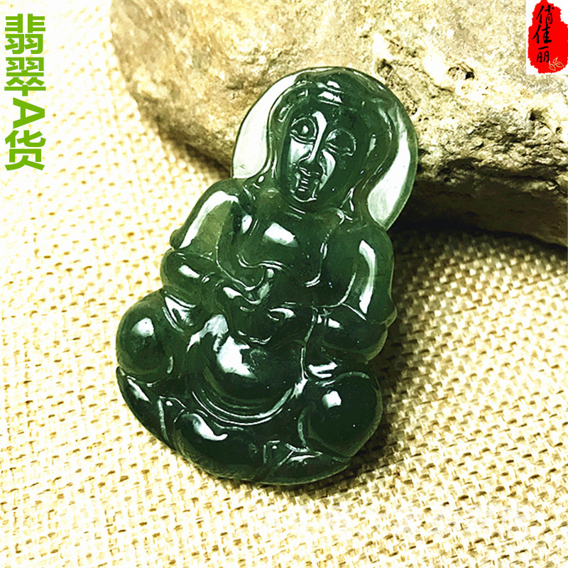 メーカー直卸玉ミャンマー翡翠a品ペンダント油青観音菩萨玉器プレゼント