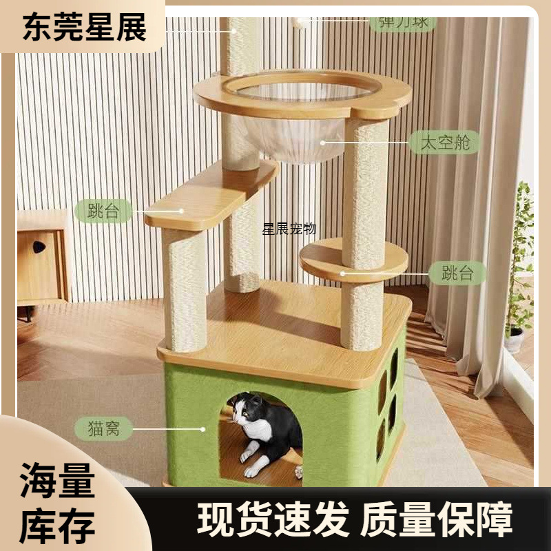 小さな家向けの猫クライミングフレーム、猫のおもちゃ、ダブルスペースカプセル、キャットヴィラ、キャットツリー、一体型大型猫の巣ラック