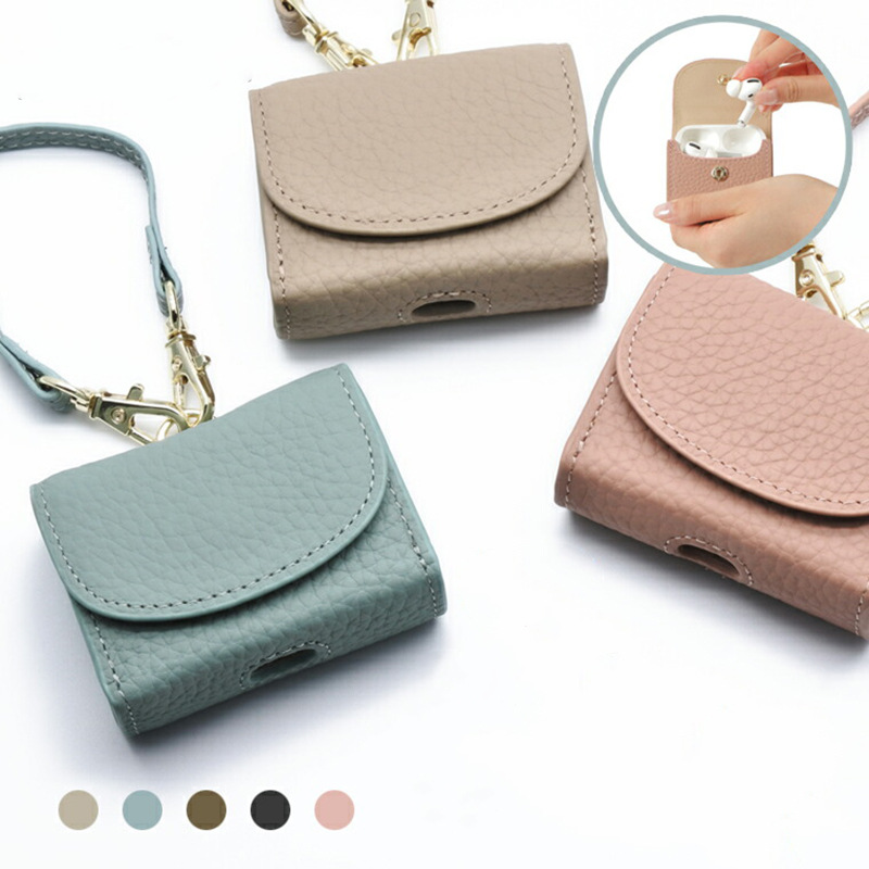 日本と韓国版のPUレザーペブルドAirPodsヘッドフォンケース、シンプルでファッショナブルなBluetoothヘッドフォン保護カバー、ヘッドフォンバッグ