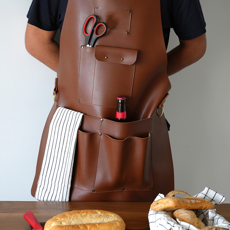 クロスボーダーpuレザーエプロン屋外バーベキュー防汚エプロンベーキングコーヒー作業ノースリーブエプロンツールよだれかけ