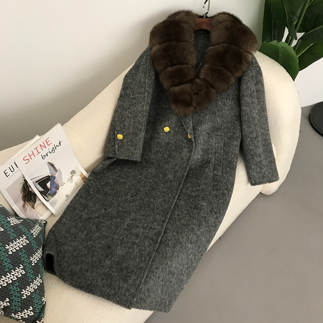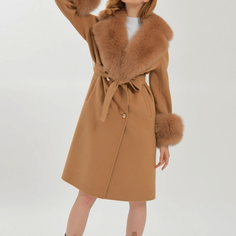 現物の女性のキツネの毛のカシミヤの毛はコートの女性の秋冬のコートの女性の高級感の両面のウールのコートです。
