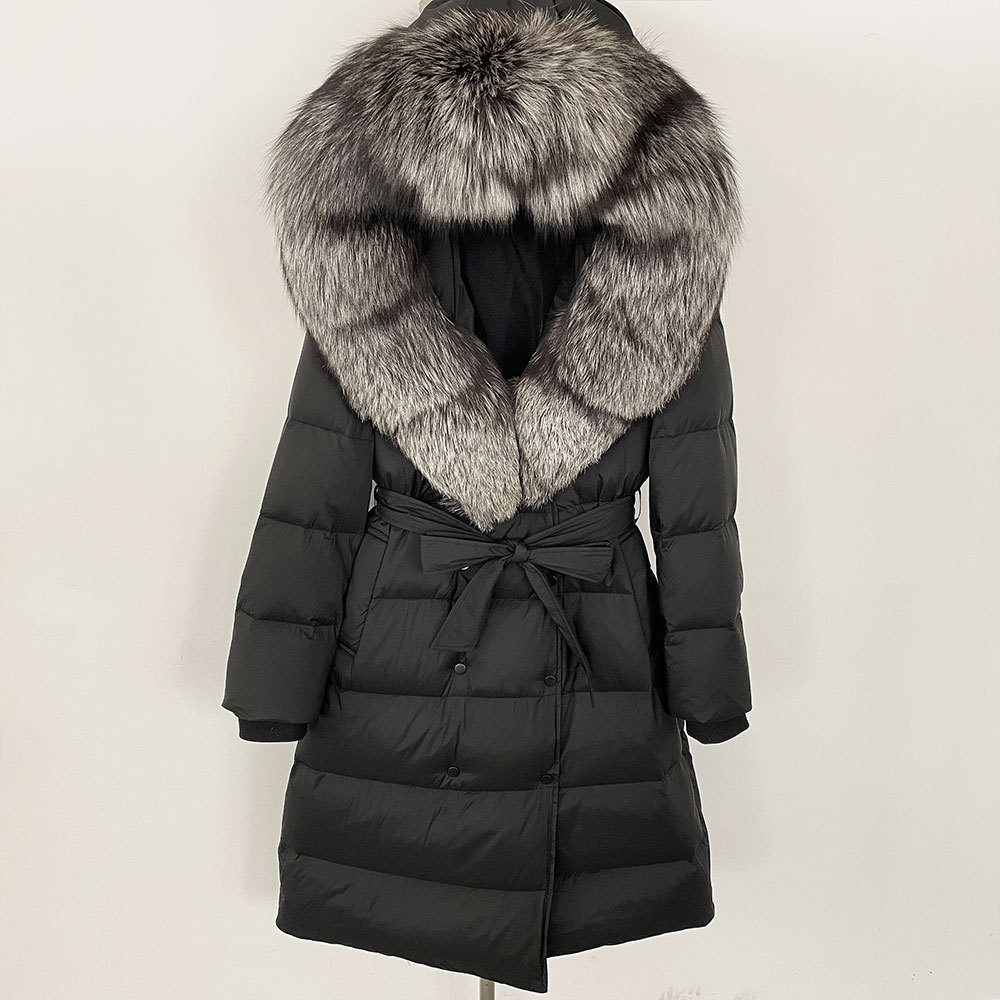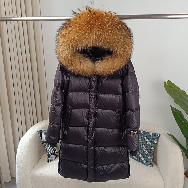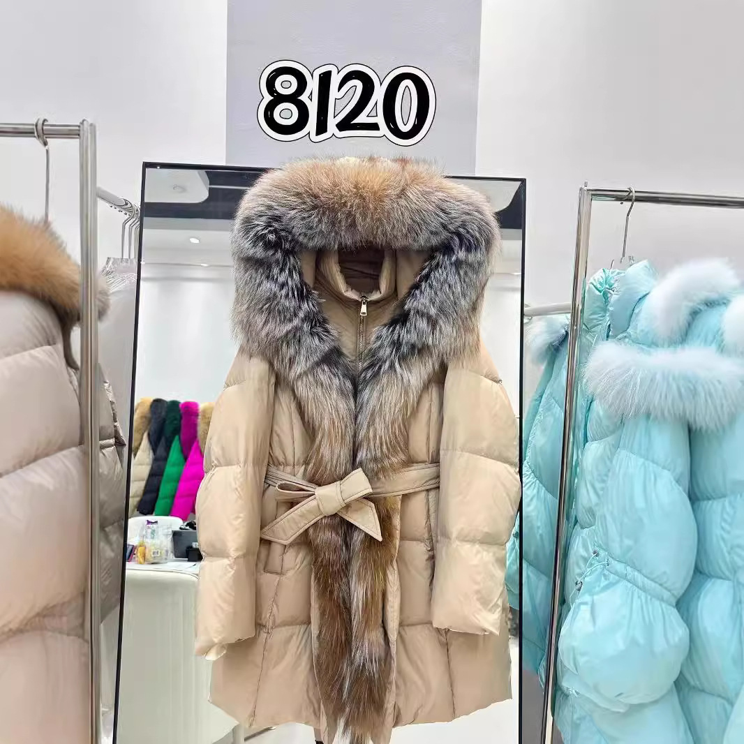 24秋冬新作毛皮ダウンジャケット女性用高級女性用90白鴨毛真狐毛襟フード付きダウンジャケット