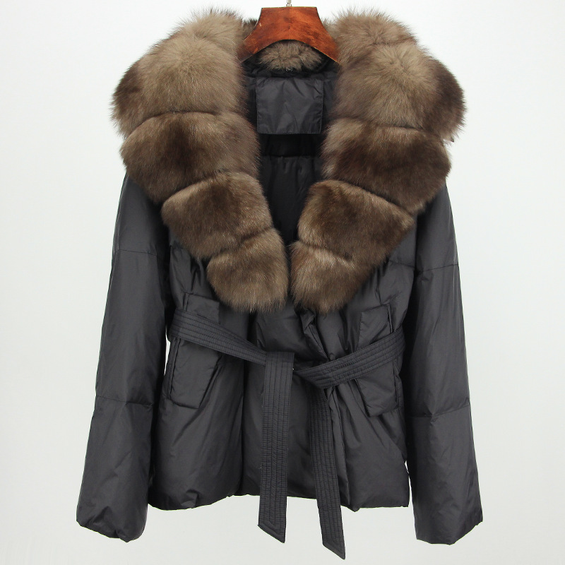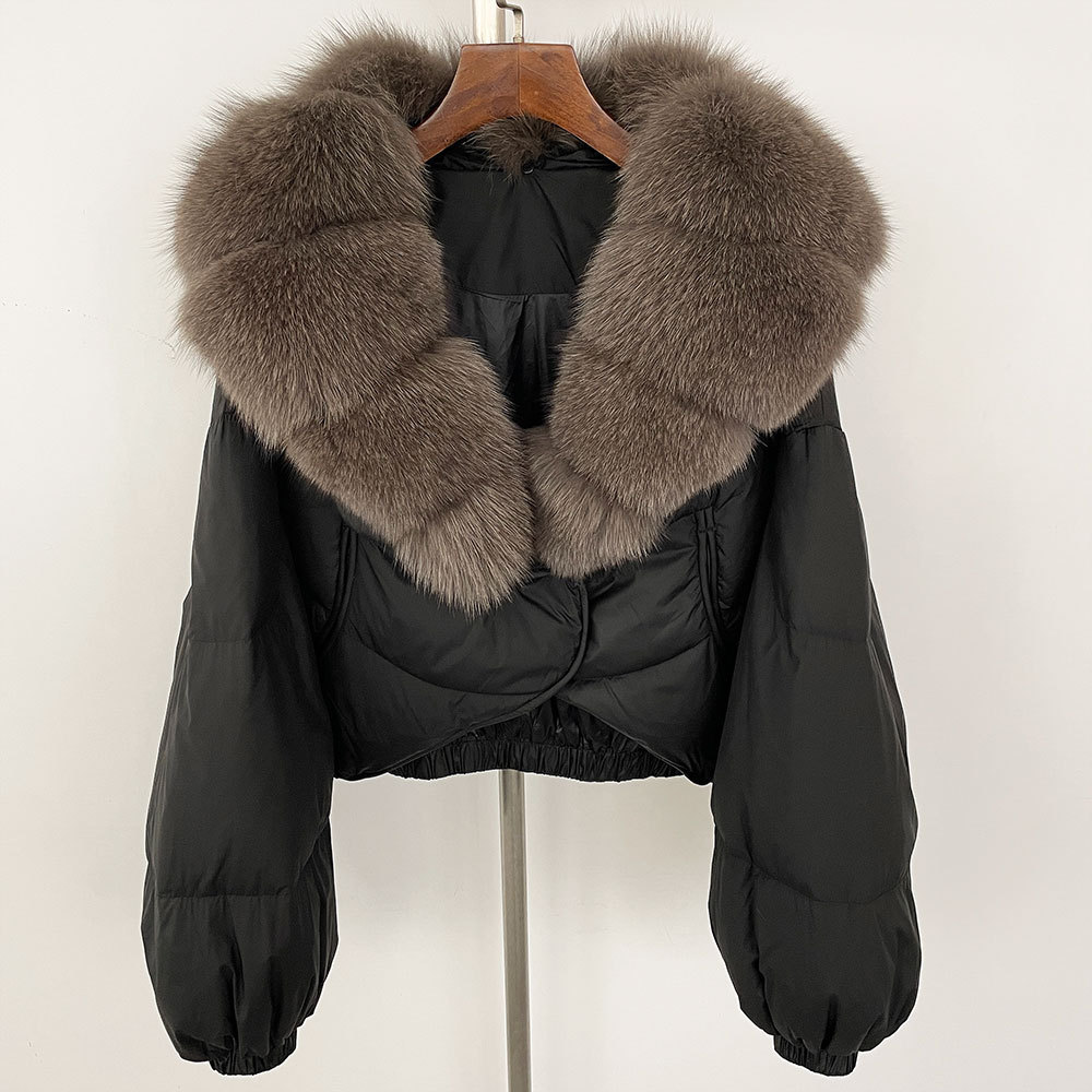 2023秋冬の新型白鴨羽毛ダウンジャケットの短い気質のキツネ毛毛の襟の毛皮のコートの欧品の高級感