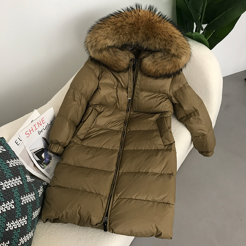 冬の新型コートの女性のファッション的なキツネの毛の帽子の女性の薄い白鴨の羽毛ジャケットの長いタイプの女性