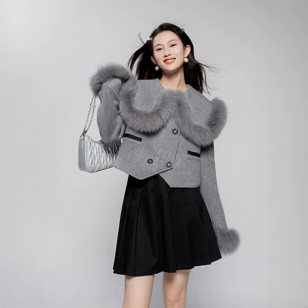 24秋冬の新型の両面のカシミヤのコートのキツネの毛は襟をめくって甘くて小さいです。
