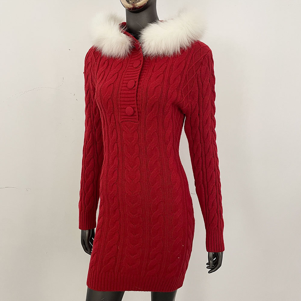 本物のキツネの毛の襟の新型の女の子のスカートの湿っているニットの服の2025大連の帽子の頭の頭の年のファッションのカジュアルなセーターの女性