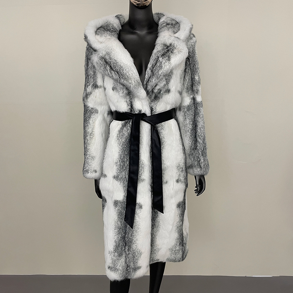 毛皮一体コート真兎毛天然毛皮コート女性冬ファッション保温帽子毛皮コート女性