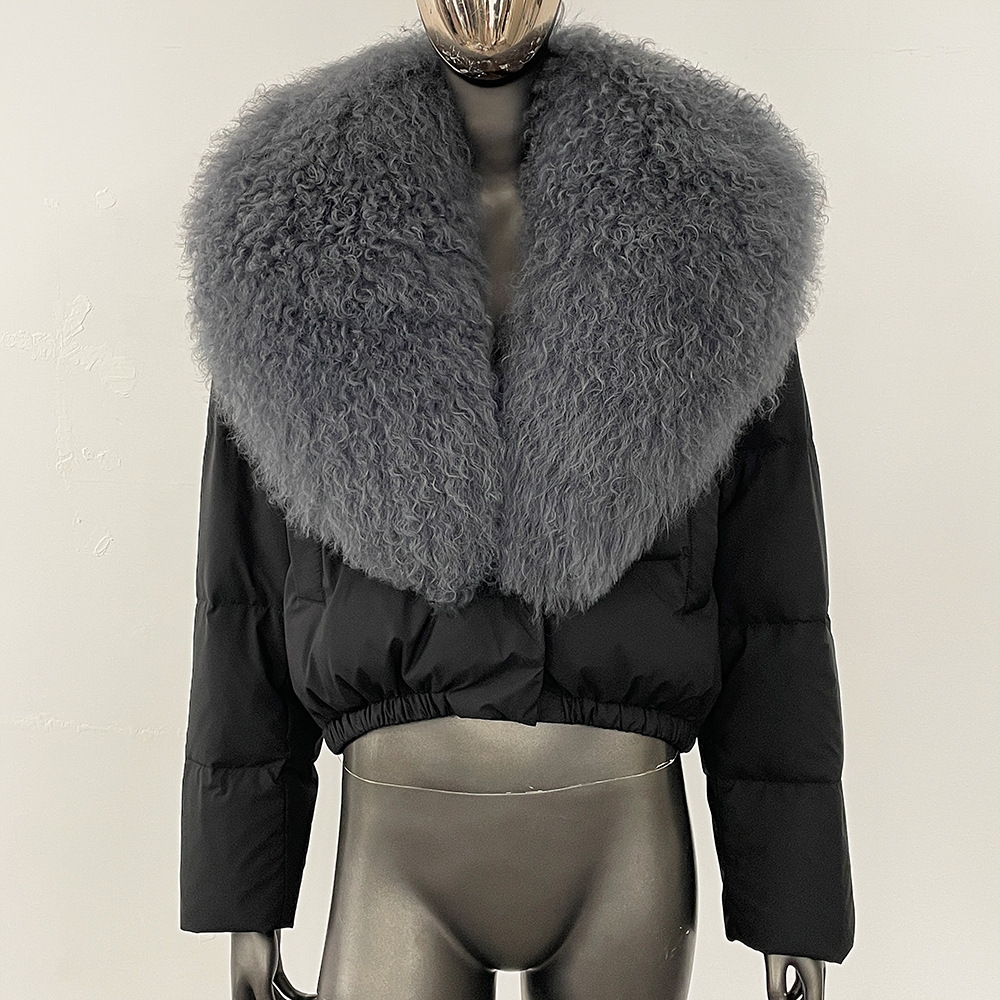女性のショートファッション暖かい 25 冬の新しいダウンジャケット小柄なスタイルの特大リアルビーチウールカラージャケット