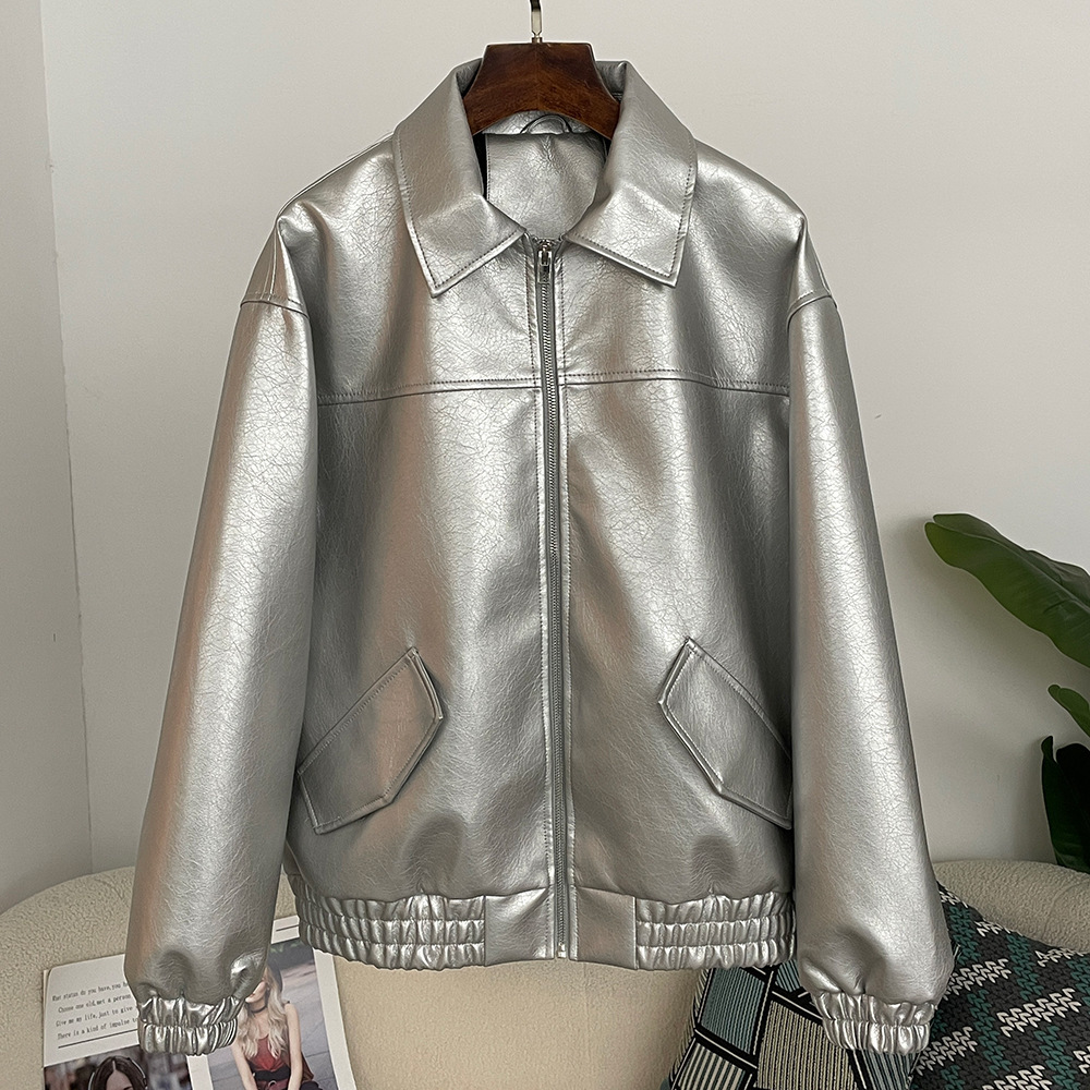 クロスボーダー2025人気春秋新作光沢ジッパー野球ユニフォームおしゃれなゆったりカジュアルレザージャケット