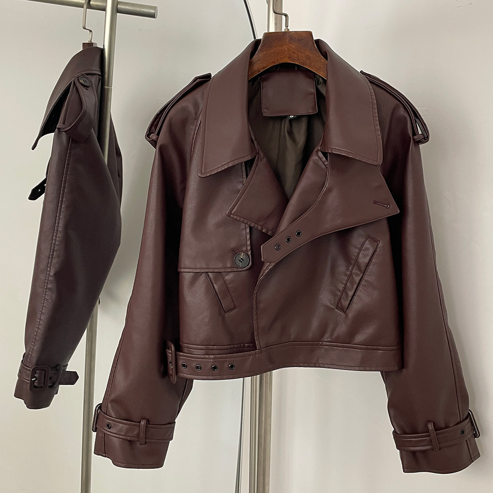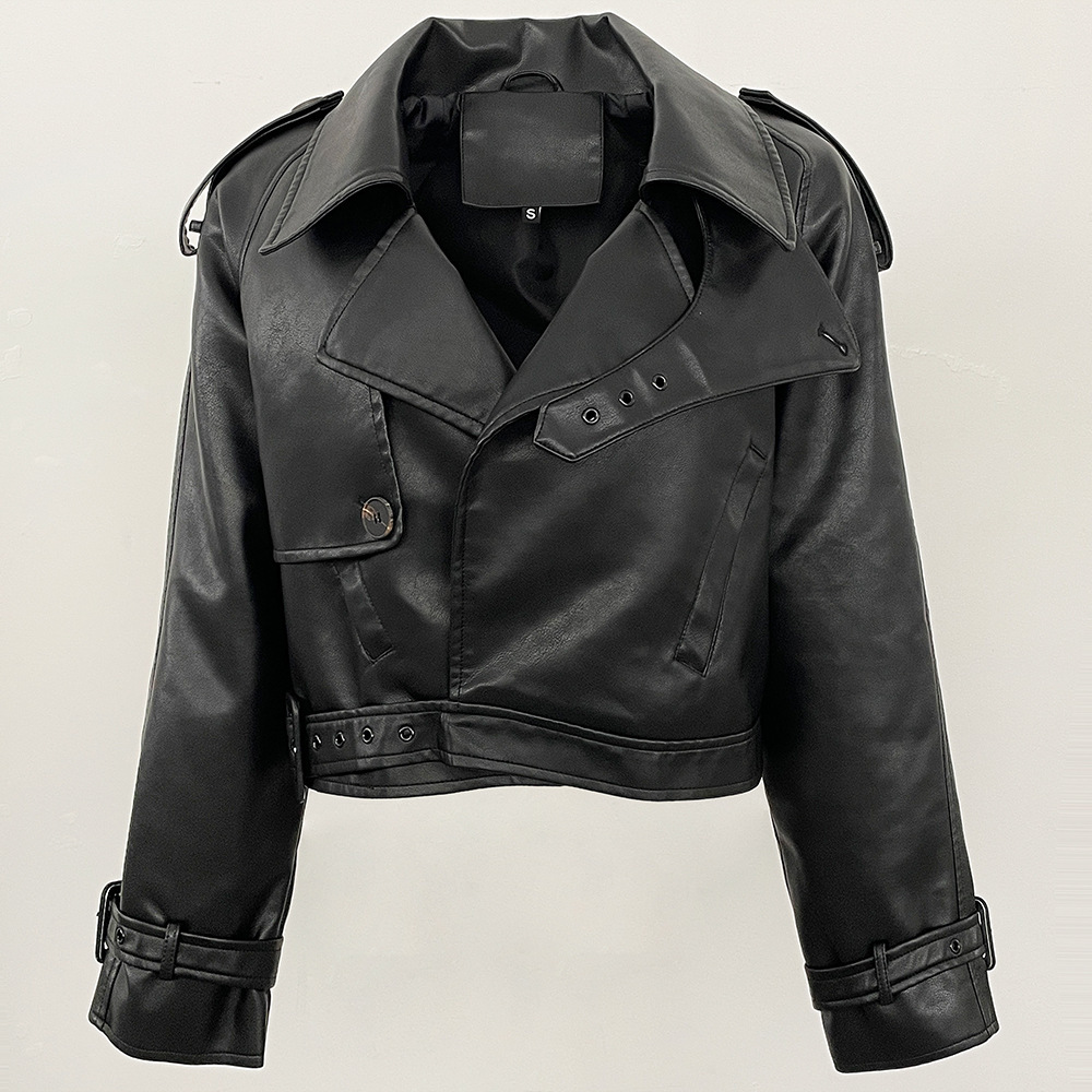 クロスボーダー女性のレザージャケット女性 25 ヨーロッパとアメリカのクロスボーダー春と秋の新しいパーソナライズされたストリート PU ラペルオートバイレザージャケット