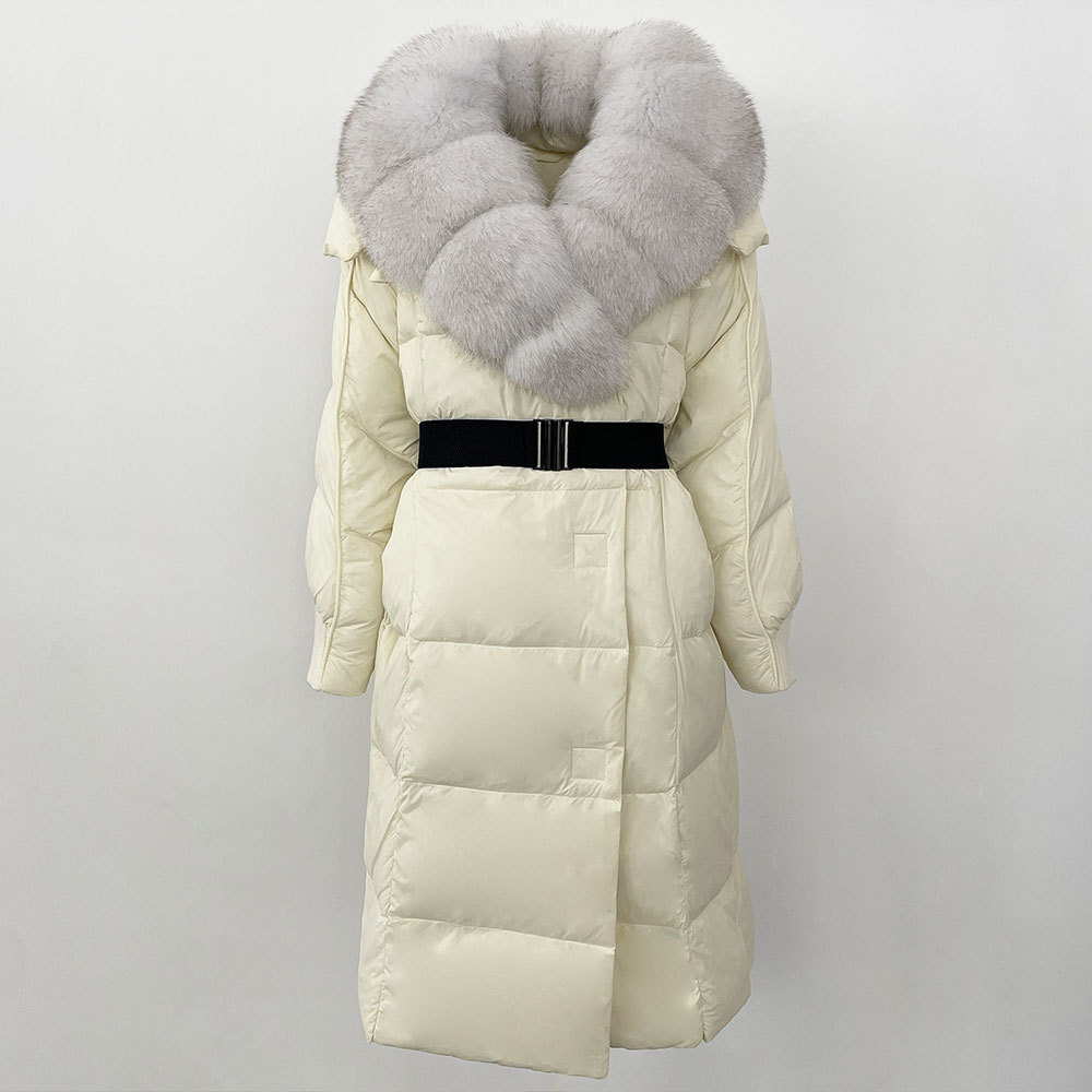 2024冬の新型キツネ大毛襟欧米の高級女性は、ストレートのゆるいダウンジャケットを厚くした