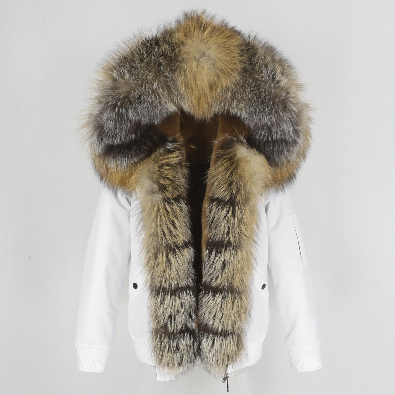 冬2024新型ファッション保温パーカーは、ウサギの毛の中の大胆なタヌキの毛の襟を厚くすることができる