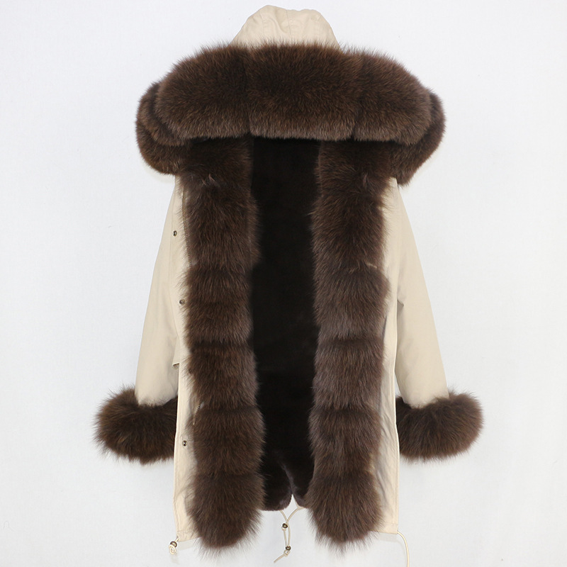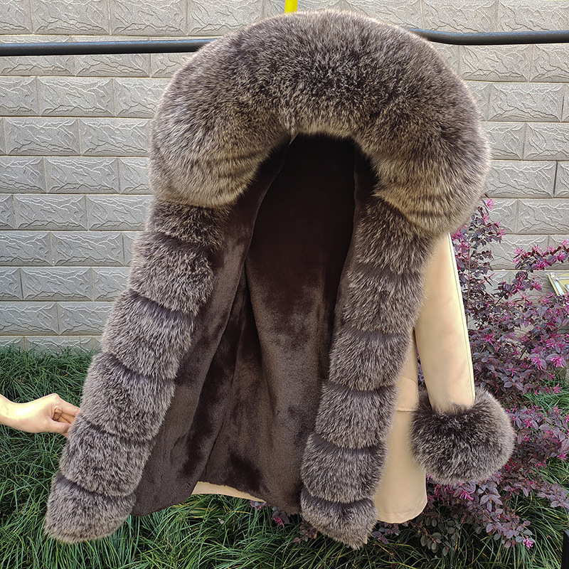 2024新型パーカーは人工毛の内胆を厚くして、本物のキツネ毛の大きな毛の襟のジャケットの毛皮のコートを取り外します。