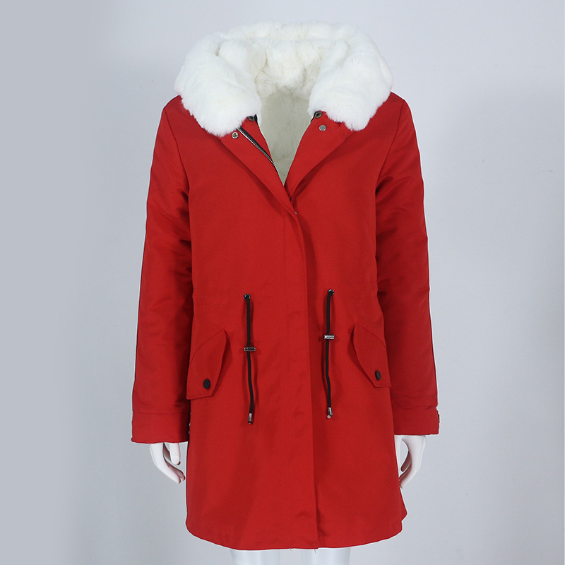 2024秋冬の新しい中の長さの女性派は取り外し可能な人工毛の内胆を克服します。