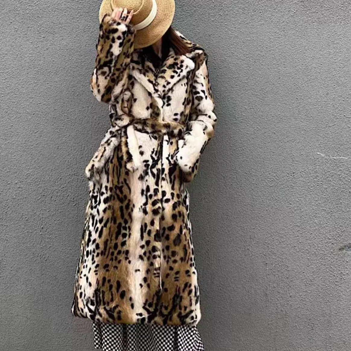 毛皮コートクロスボーダー外国貿易新しいヒョウ柄ウサギの毛皮コート女性のロングルーズファッションウサギの毛皮コート